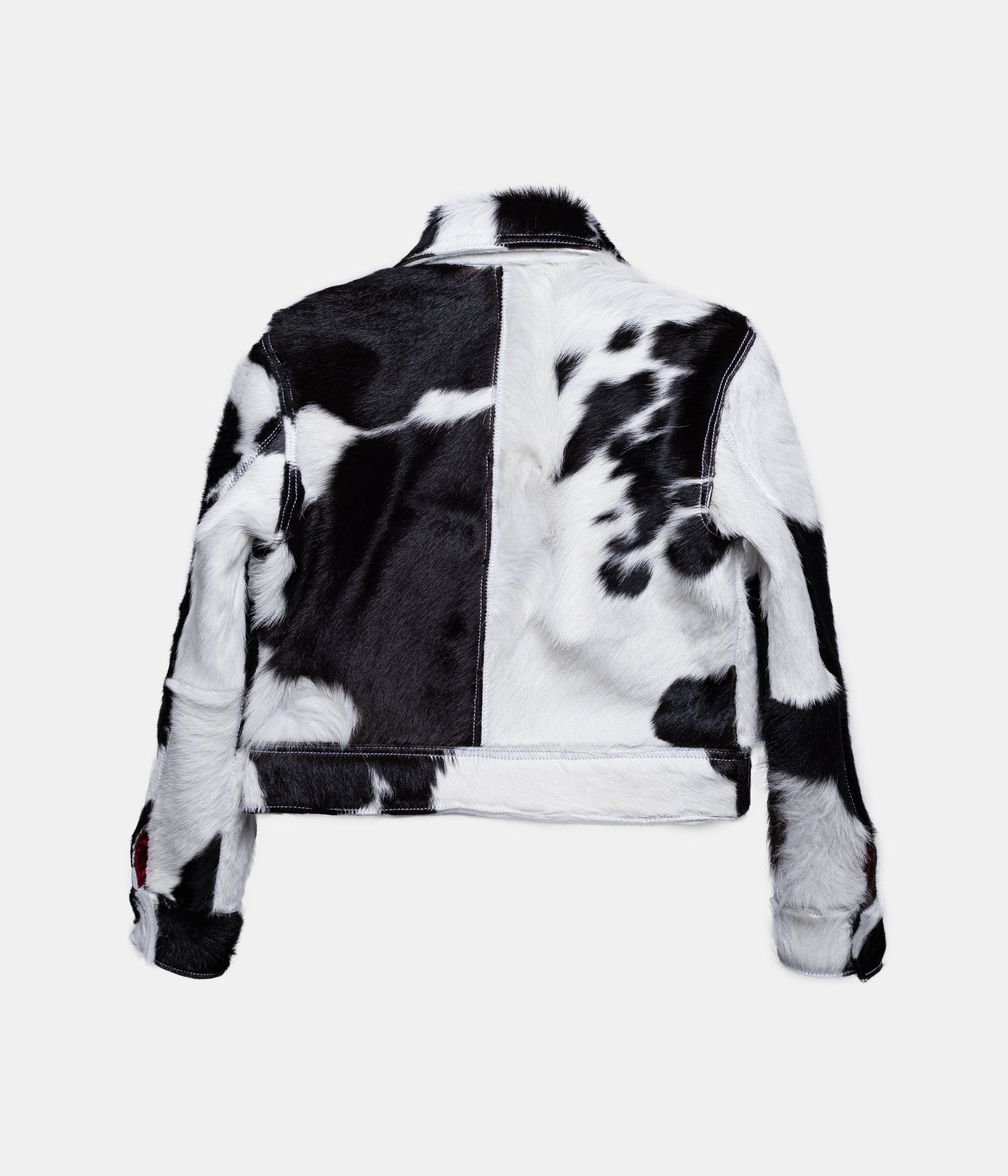 Cada chaqueta es única, el pelaje de Becerro muestra una combinación de colores Blanco y Negro.